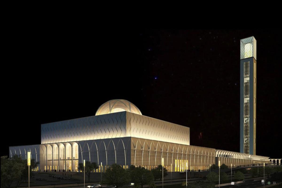 La mosquée dispose d'une salle de prière (salat) d'une superficie de 20 000 m2 (220 000 pieds carrés), capable d'accueillir 120 000 fidèles. La nef centrale de cette salle est entourée de colonnades, avec le mihrab situé à l'est, en marbre blanc. La salle est surmontée d'un dôme d'un diamètre de 50 m (160 pi), atteignant une hauteur de 70 m (230 pi).